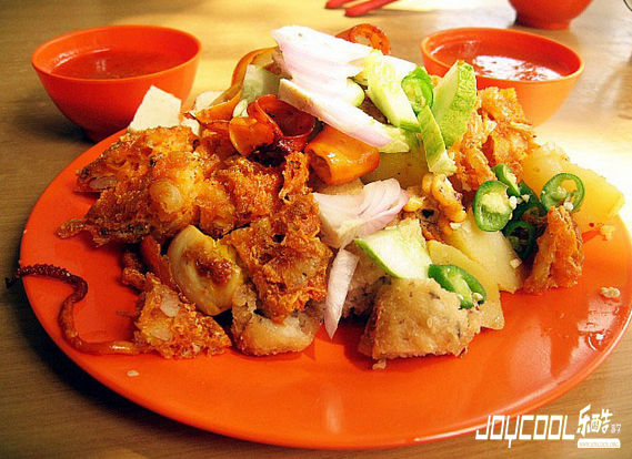罗惹是新加坡风味的沙拉,用豆芽、绿叶蔬菜、油条、菠萝、黄瓜和花生与虾酱混合而成。这道风味小吃源自印尼的蔬菜沙拉。经过本地华族小贩的改创,成功的在这道小吃中加入了油条、熏墨鱼甚至皮蛋,变成本地人爱吃的一道小吃。爪哇式的罗惹材料是以水果和蔬菜为主。