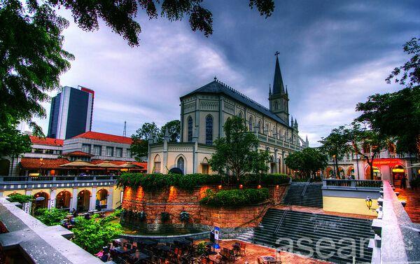 赞美广场(CHIJMES)是新加坡重要的历史古迹之一,世界上仅存的几个女子修道院之一,主体建筑为一栋哥德式教堂。附近可以就餐、购物和娱乐。由教堂改建的CHIJMES大厅经常演出音乐剧、独唱会及其它戏剧。