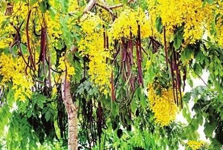 特征:腊肠树开出的金黄色花朵犹如飘落在树上的金色雨滴,又像一串串垂下来的金色葡萄。由于花香浓郁,非常吸引蝴蝶、蜜蜂和小鸟。每隔八到十个月,尤其是在花开期间,它就会落叶一次;花谢后,会长出长豆般的绿色种子。