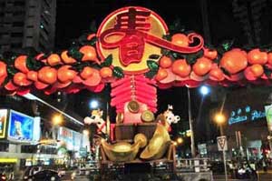 路两旁是华人典型的锌顶板壁、四檐滴水的屋舍。每逢春节,家家户户不约而同在门楣披上红彩,贴上春联,一片光鲜悦目。