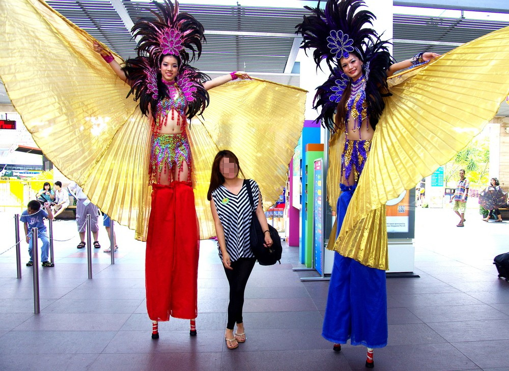 进入新加坡的圣淘沙岛,就犹如进入了一个大公园,大游乐场。漫步其中,偶然遇到几个化妆模特在给游人助兴,踏破铁鞋无觅处,不能错过!随手拍了几张.新加坡全年都是夏日高温,模特们也怕热,总躲在阴影下表演(天天中午30多度,谁不怕?)一起欣赏下吧!