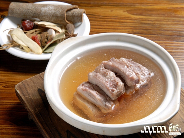 那个奇怪的文字是福建古方言发音肉骨茶,不信你找个福建老人念给你听。在新加坡和马来西亚都是流行的早餐。肉骨茶简单说就是肉骨汤和茶。用各种香料煮的长条猪肋骨汤,搭配米饭或面条。配菜是用来泡汤的油条,可以煮在汤里的蘑菇、豆腐干和豆泡,以及鲜红椒大蒜酱油蘸碟。大清早喝肉汤,为了解腻,还要泡工夫茶作为搭配。如今肉骨茶明显分为两派,福建派重口味,汤头颜色深黑,会加更多的香料在里面;潮州派的汤水清爽,看起来是浅浅的琥珀色,味道也稍清淡,凸显食材本味,但胡椒味重。如果肉骨少了茶,这样东西就魅力减半,荒谬加倍。现在新加坡,肉骨茶专门店,只有老人家会专门要一套凤眼杯小泥壶慢慢泡工夫茶来喝了,年轻人统统嫌麻烦,早就不玩了。肉骨茶牛在那汤头的复杂香味。好的自然会掌握好各种香料的平衡。如果要地道,需得是低矮的桌椅,一棵大榕树下面随便坐,肋骨要长,猪要新鲜,汤要烫,衣裳要家常透风,茶要慢慢喝。推荐去处:Ng Ah Sio Pork Ribs Soup Eating House