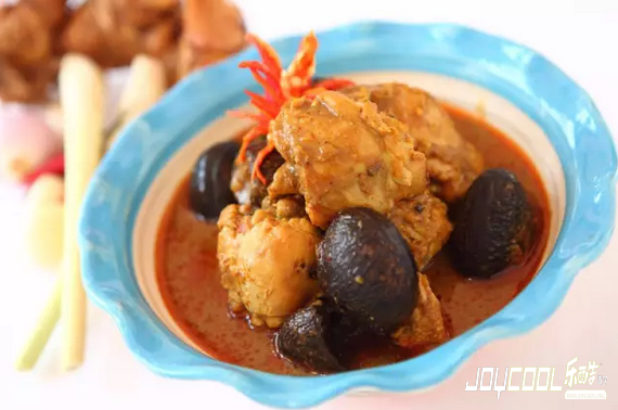 相比新加坡其他让人眼花缭乱的各式小吃,黑果鸡绝对算是当地土生华人最喜爱的一道大菜。不仅是源于其繁杂的制作工序,更是因为其代代相传的经典魅力。“黑果“是一种外壳坚硬,内里辛辣的果实。若要释放黑果的魅力,不仅需要先在水中浸泡两天,取得果肉后还要与多种香料进行捣碎混合,之后的炒制更需花费半天的时间。