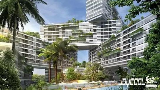 积木形住宅区(堆积)这幢戏剧性的堆栈积木被认为是新加坡最大、最野心勃勃的住宅项目,称之为“交错”,于2013年完成,拥有31块公共用地,占地8公顷(约8万平方米),由8个相互关联的新加坡特色庭院组成,打造出优美的绿色生活环境。